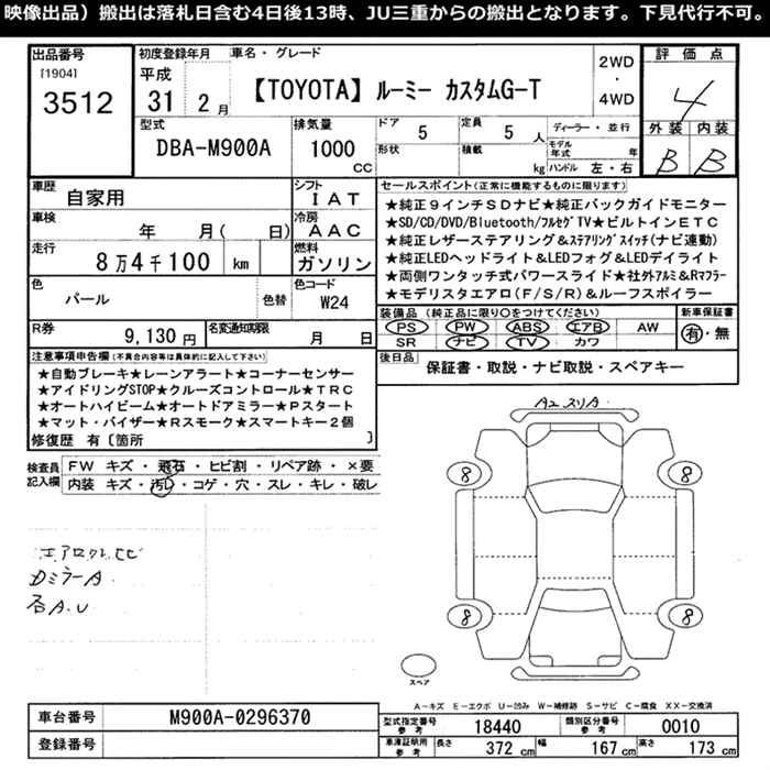 TOYOTA ROOMY 2019 г., лот № 3512
