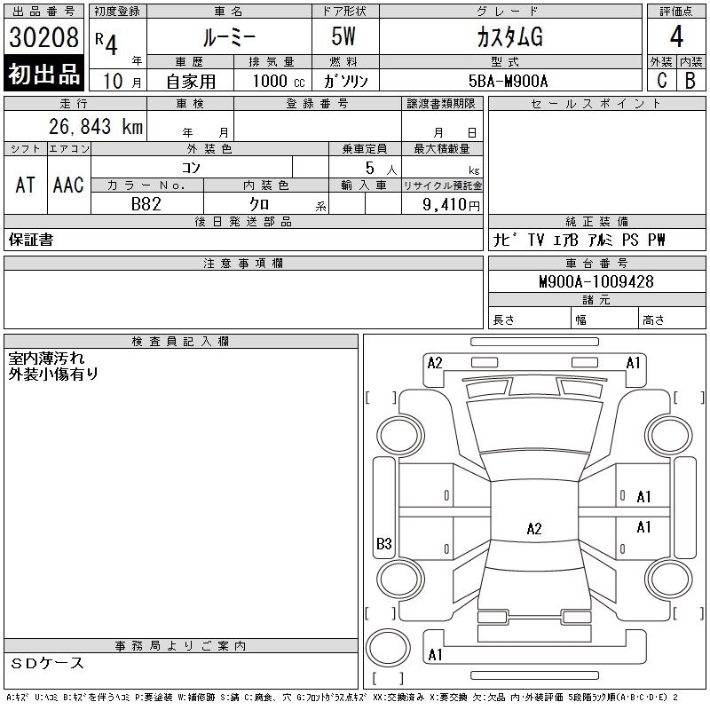 TOYOTA ROOMY 2022 г., лот № 30208