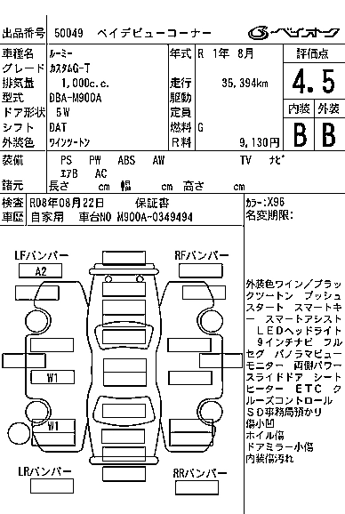 Год выпуска2019 Пробег 36 000 км КузовM900A Комплектация CUSTOM G-T