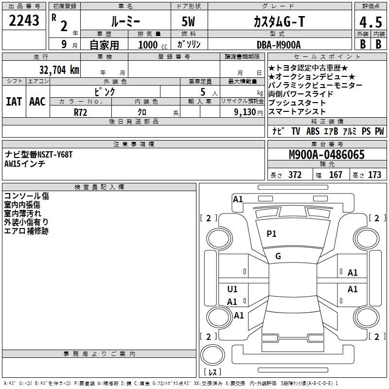 TOYOTA ROOMY 2020 г., лот № 2243