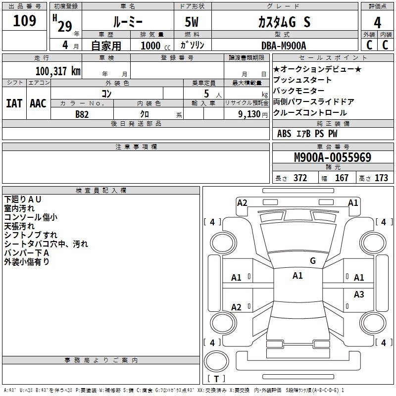 TOYOTA ROOMY 2017 г., лот № 109