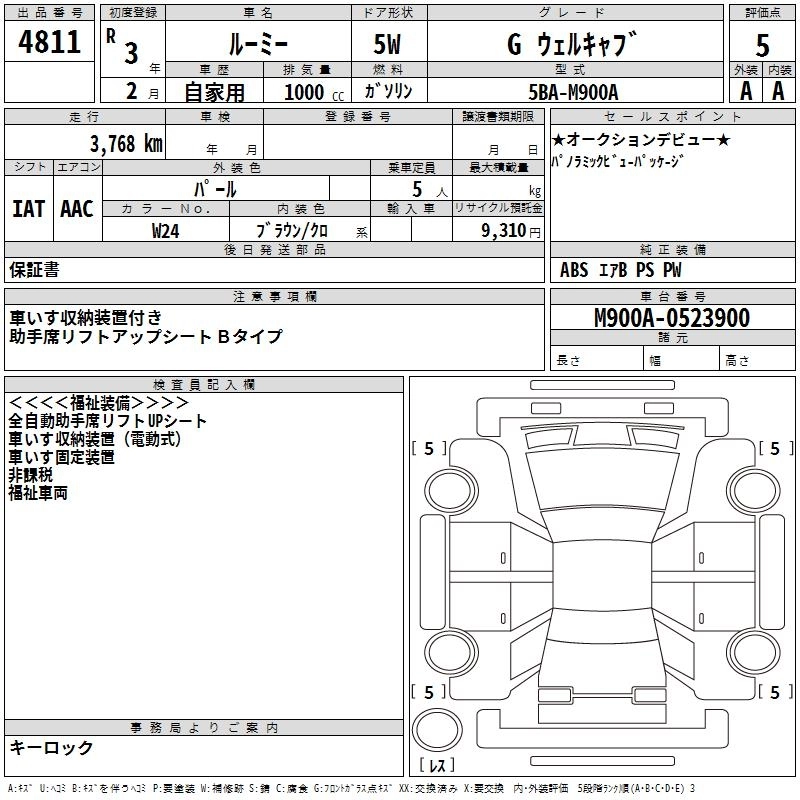 TOYOTA ROOMY 2021 г., лот № 4811