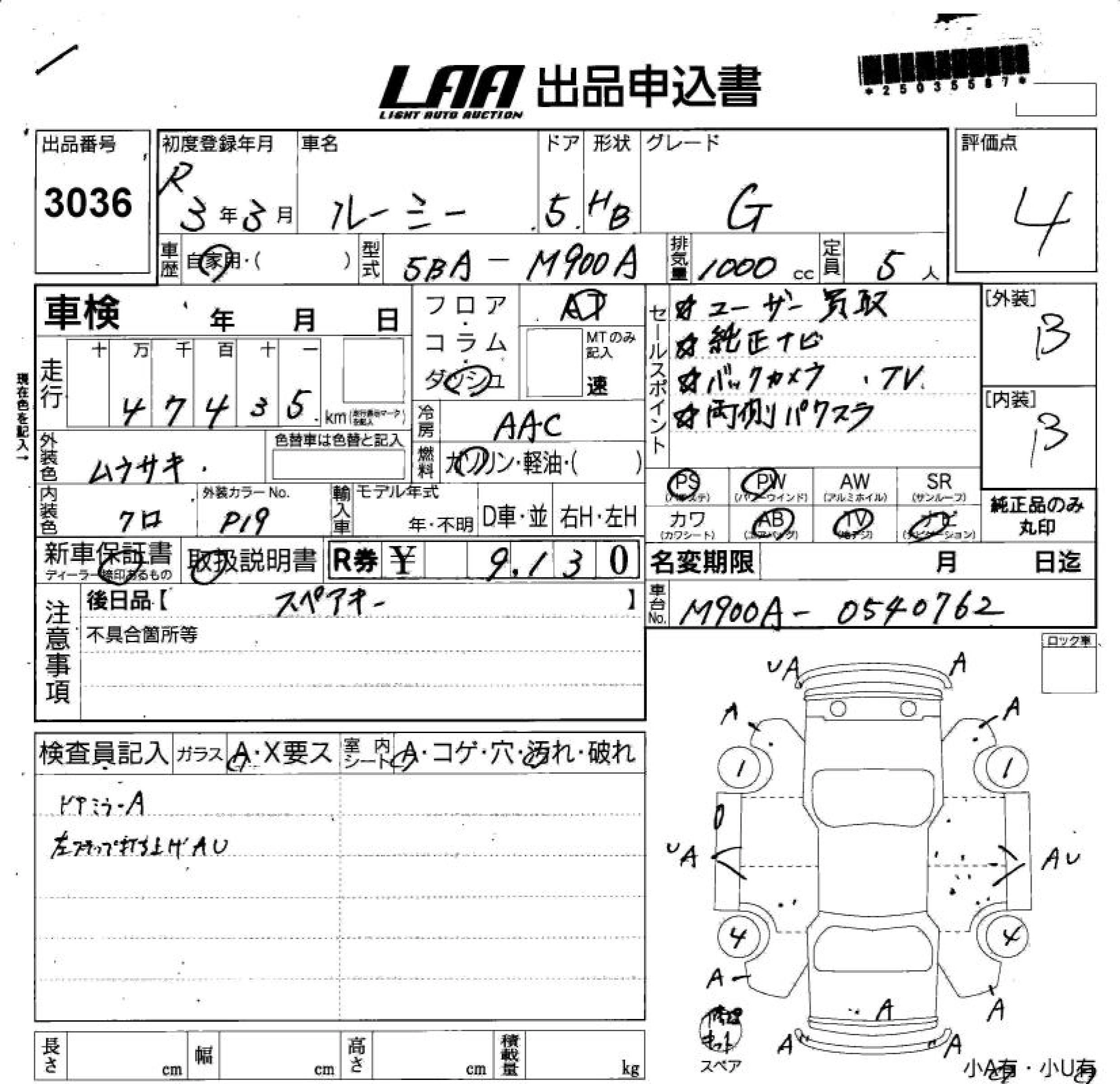 Статус выставлен на аукцион Лот 3036 Аукцион LAA Shikoku Дата аукциона 11.03.2026