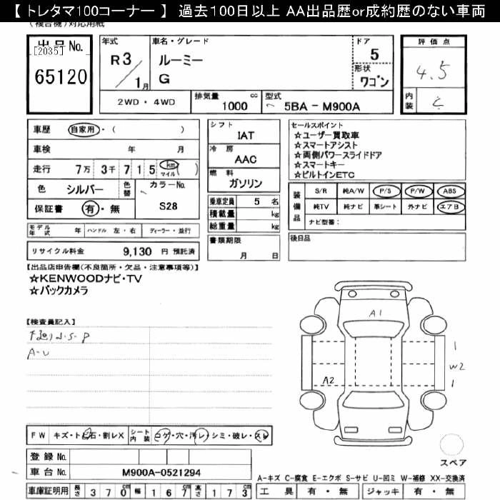 TOYOTA ROOMY 2021 г., лот № 65120