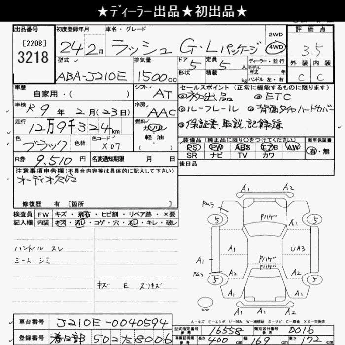 Статус выставлен на аукцион Лот 3218 Аукцион JU Saitama Дата аукциона 09.12.2025