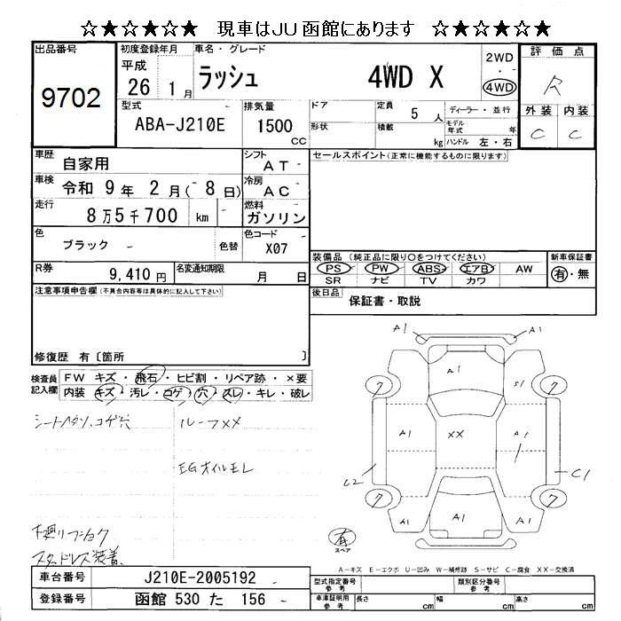 Статус не продан Лот 9702 Аукцион JU Hokkaido Дата аукциона 23.01.2026