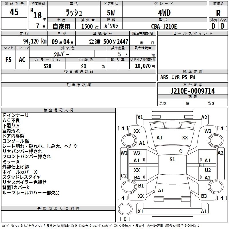 Год выпуска2006 Пробег 94 000 км КузовJ210E Комплектация4WD