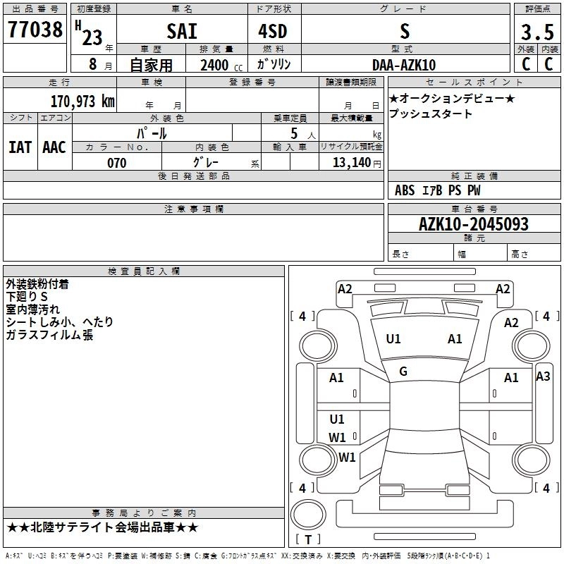 TOYOTA SAI 2011 г., лот № 77038