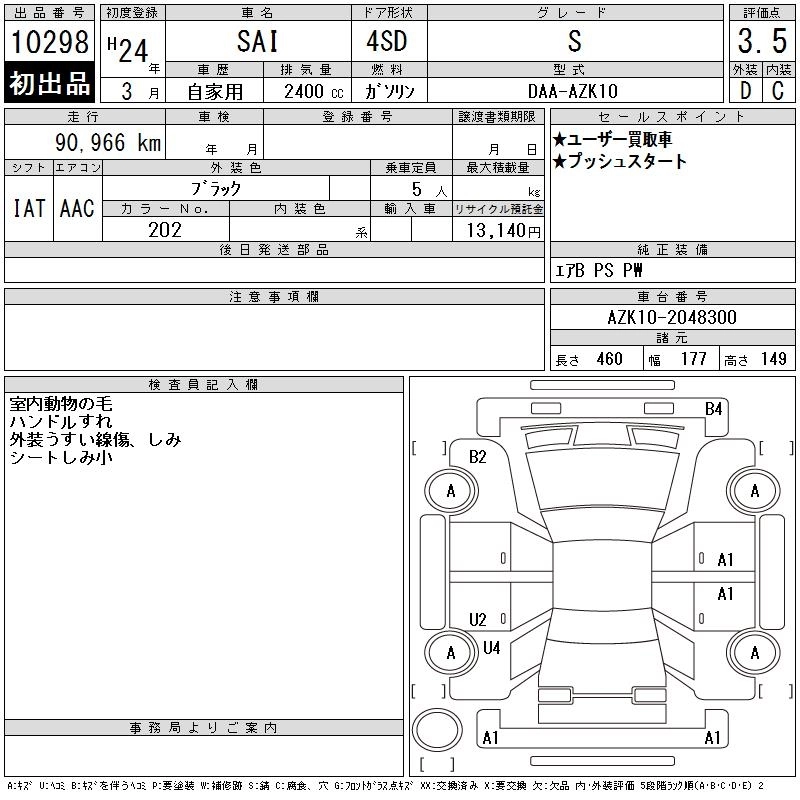 TOYOTA SAI 2012 г., лот № 10298