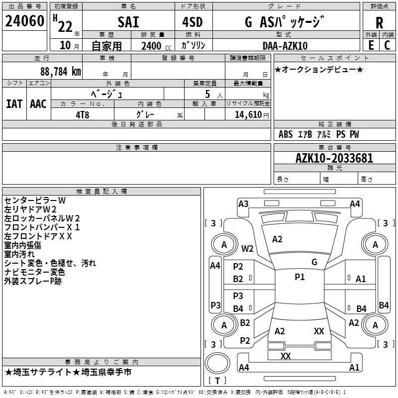 TOYOTA SAI 2010 г., лот № 24060