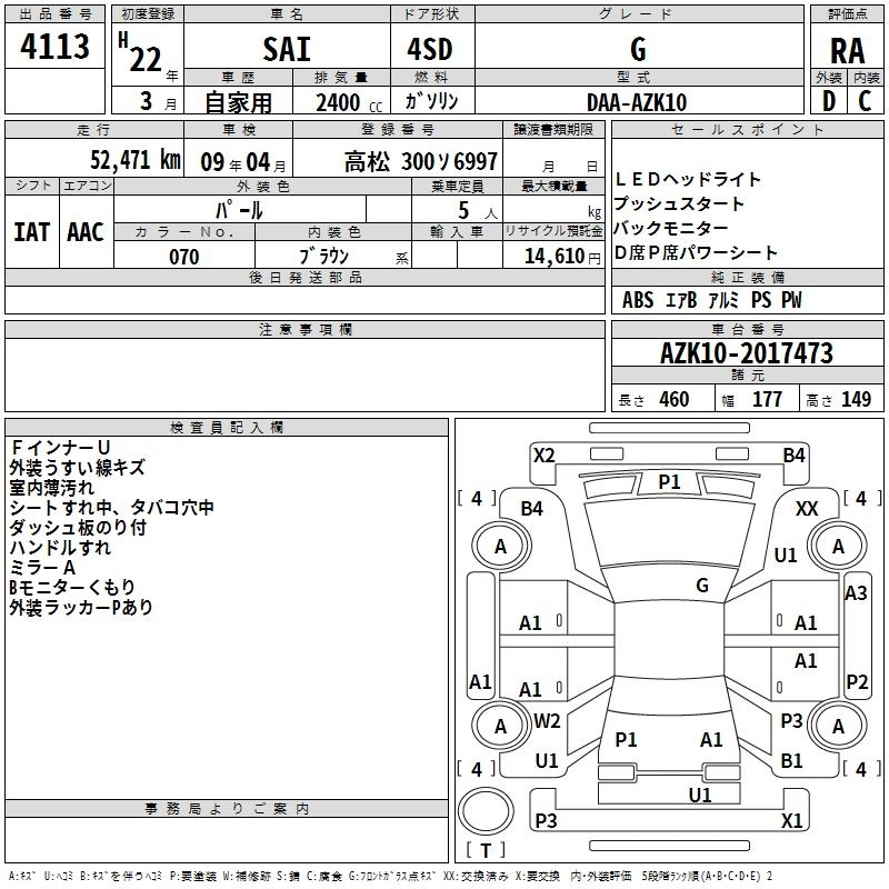 Статус выставлен на аукцион Лот 4113 Аукцион TAA Shikoku Дата аукциона 09.12.2025
