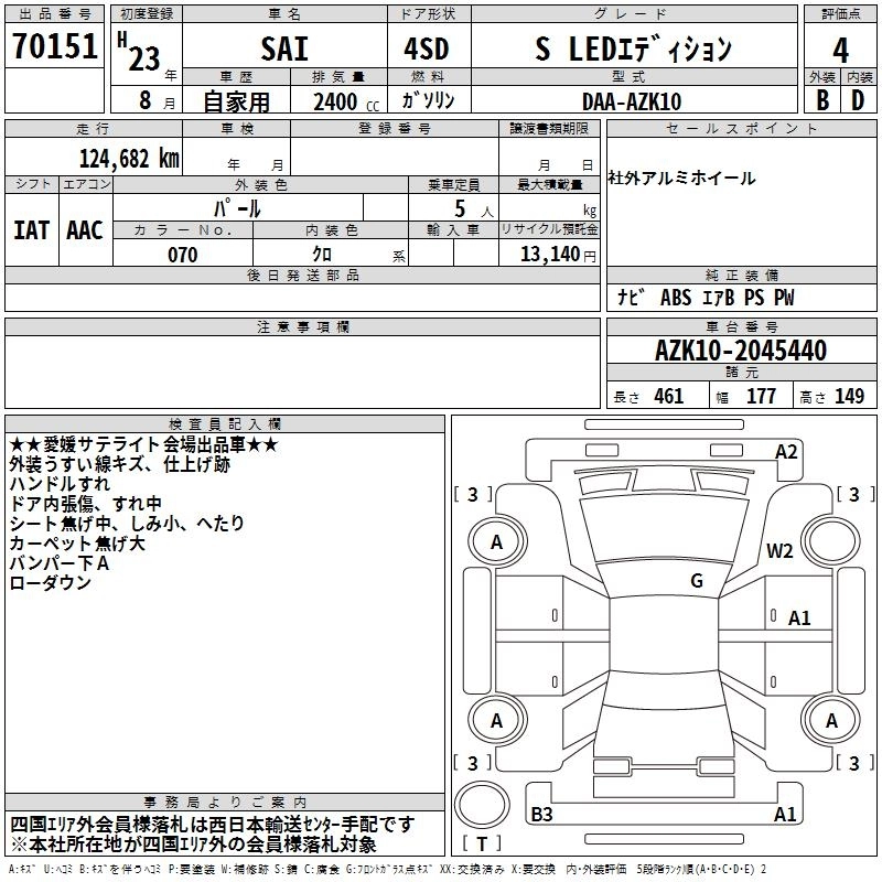 TOYOTA SAI 2011 г., лот № 70151