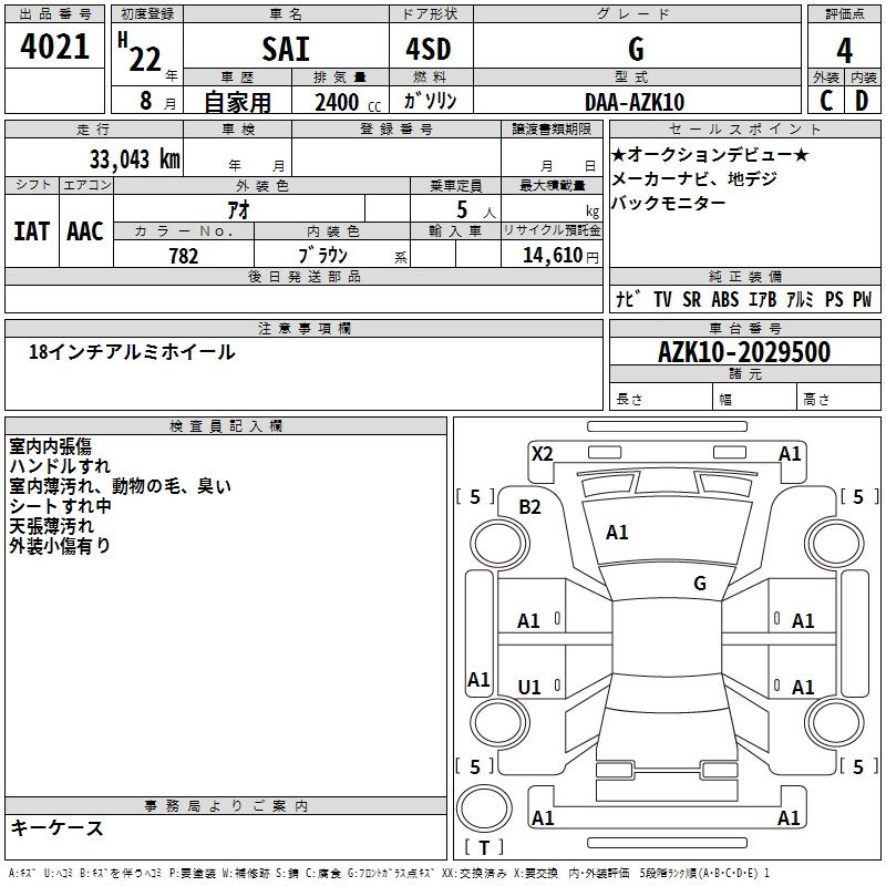 TOYOTA SAI 2010 г., лот № 4021