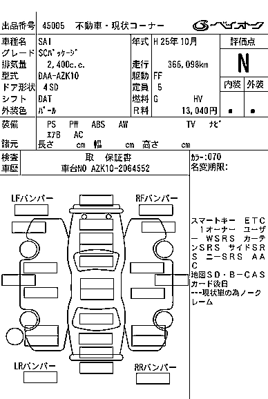 TOYOTA SAI 2013 г., лот № 45005