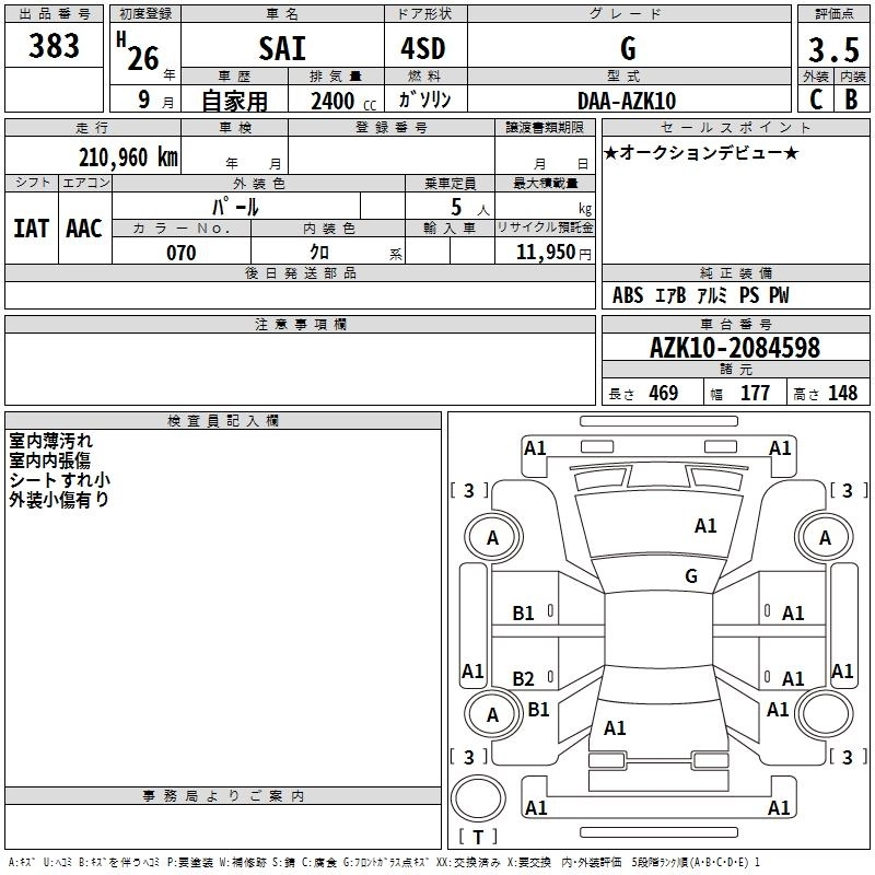 TOYOTA SAI 2014 г., лот № 383