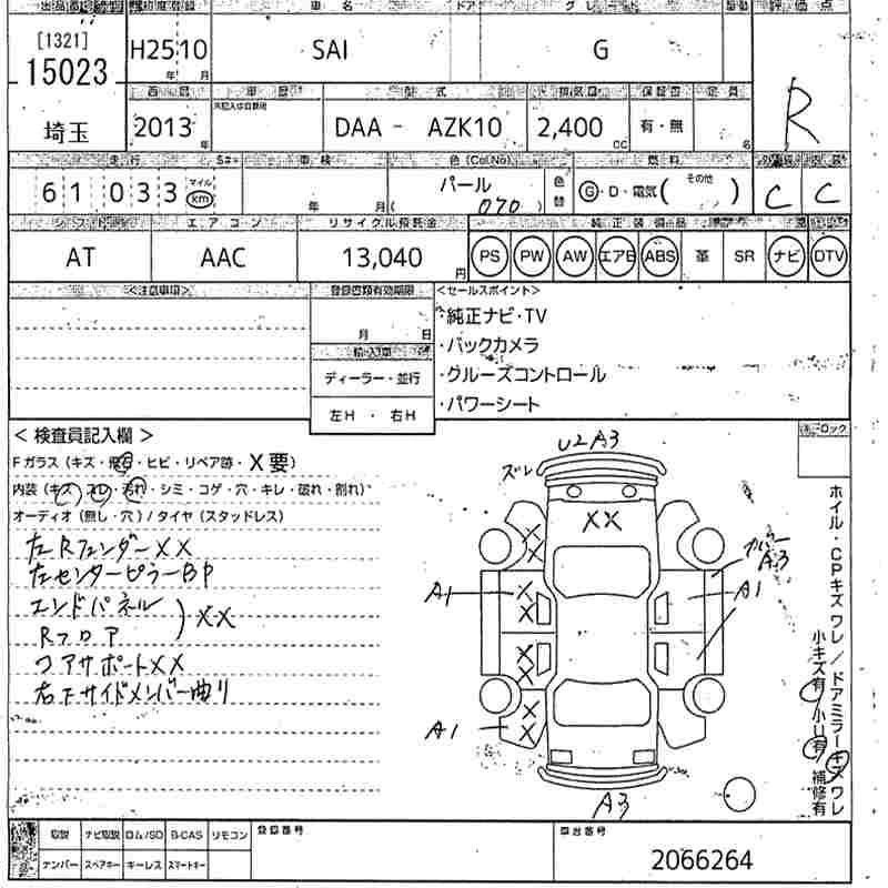 TOYOTA SAI 2013 г., лот № 15023