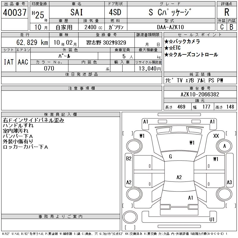 TOYOTA SAI 2013 г., лот № 40037
