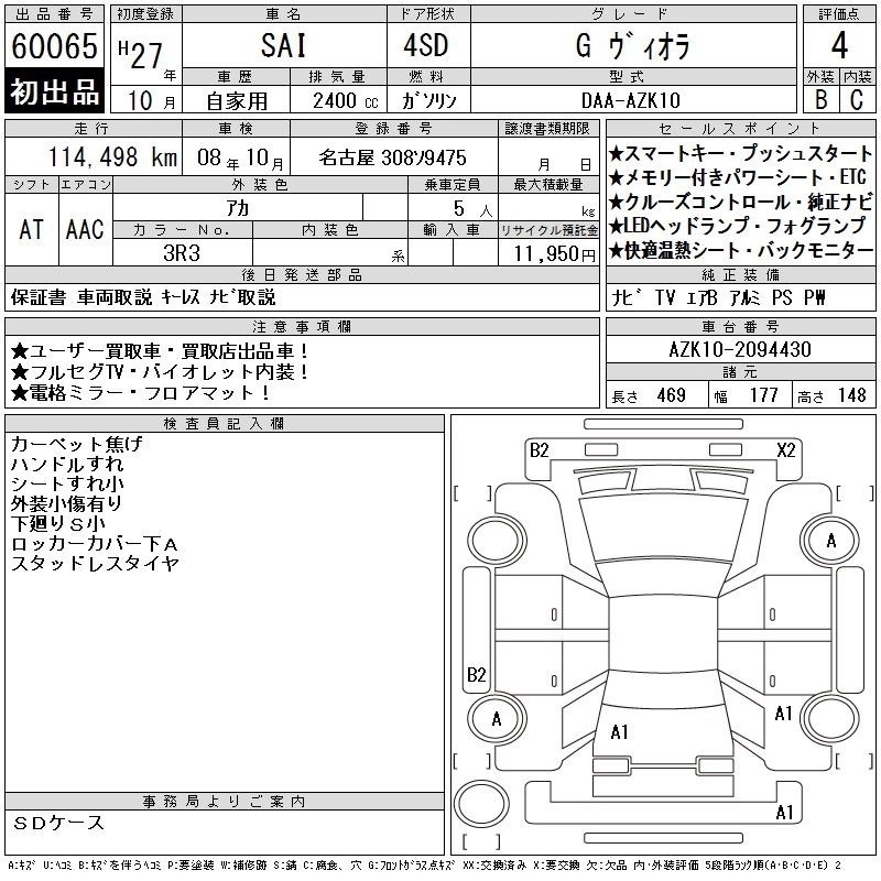 TOYOTA SAI 2015 г., лот № 60065