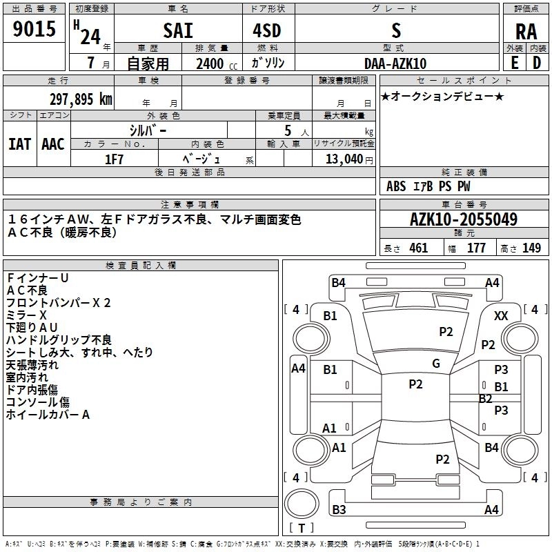 TOYOTA SAI 2012 г., лот № 9015