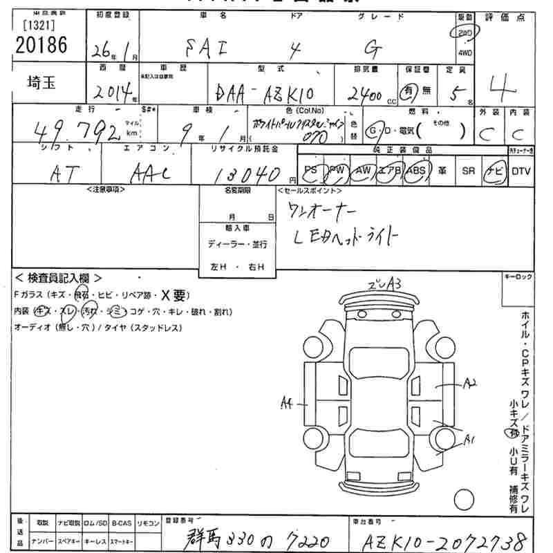 TOYOTA SAI 2014 г., лот № 20186