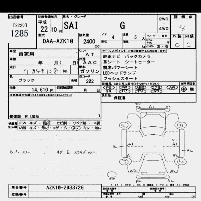TOYOTA SAI 2010 г., лот № 1285