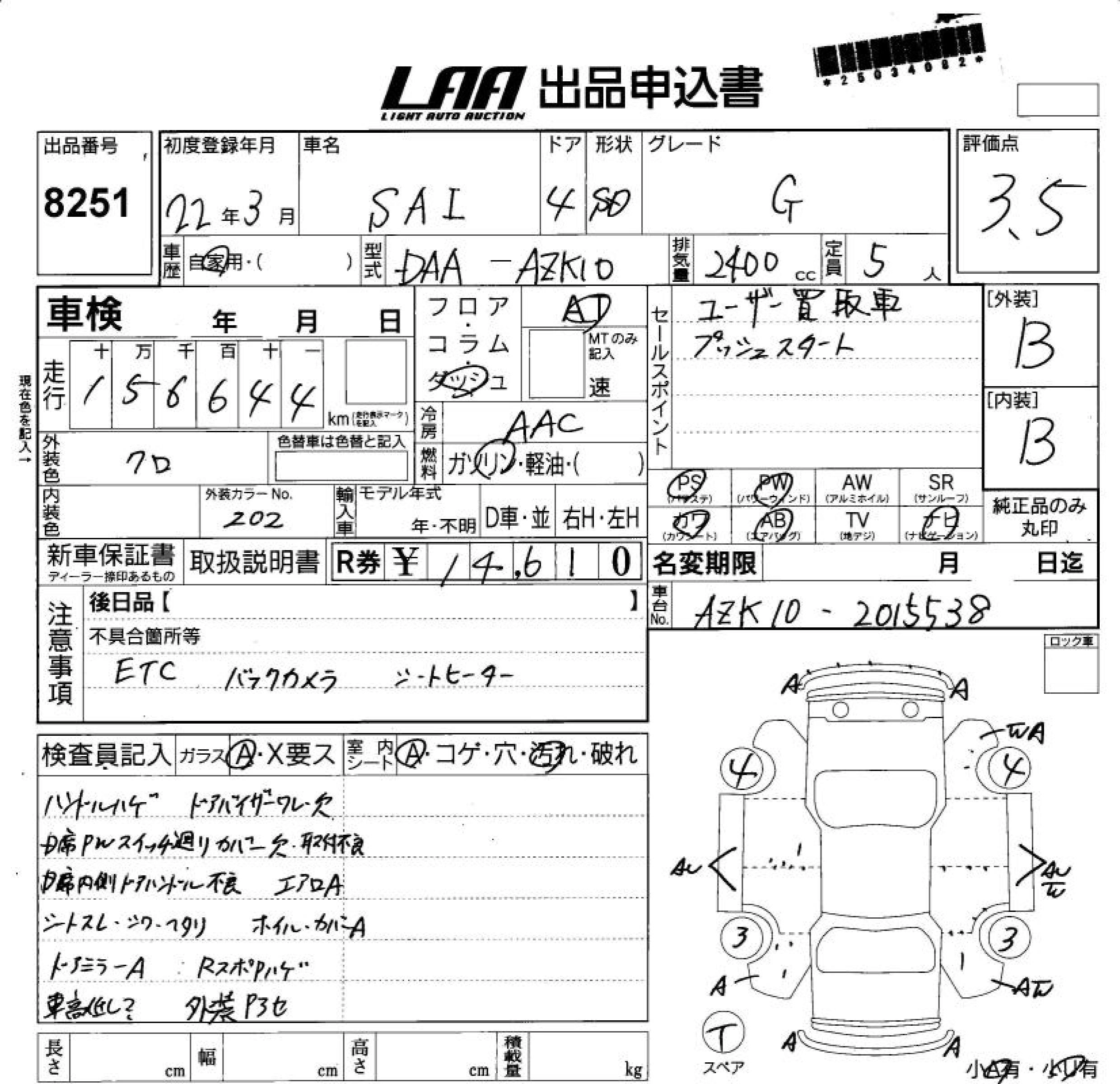 Статус выставлен на аукцион Лот 8251 Аукцион LAA Shikoku Дата аукциона 11.03.2026