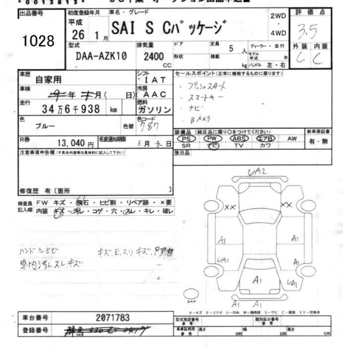 TOYOTA SAI 2014 г., лот № 1028