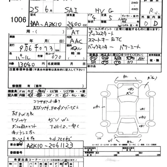 TOYOTA SAI 2013 г., лот № 1006