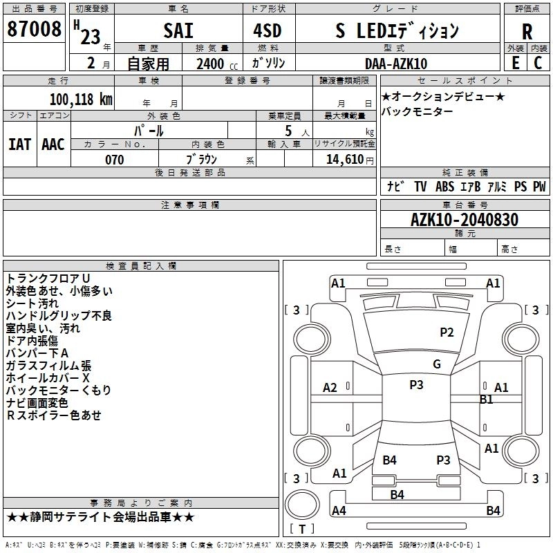 TOYOTA SAI 2011 г., лот № 87008