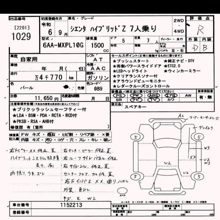 TOYOTA SIENTA 2024 г., лот № 1029