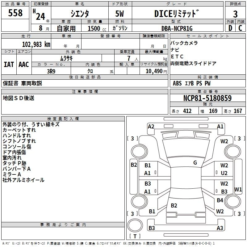 Год выпуска2012 Пробег 103 000 км КузовNCP81G КомплектацияDICE LIMITED