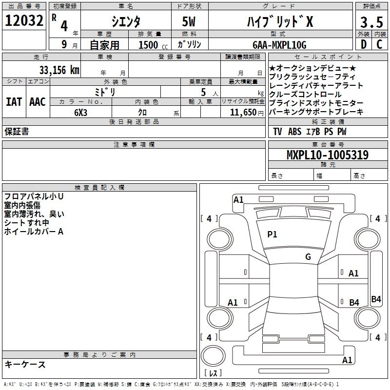 TOYOTA SIENTA 2022 г., лот № 12032