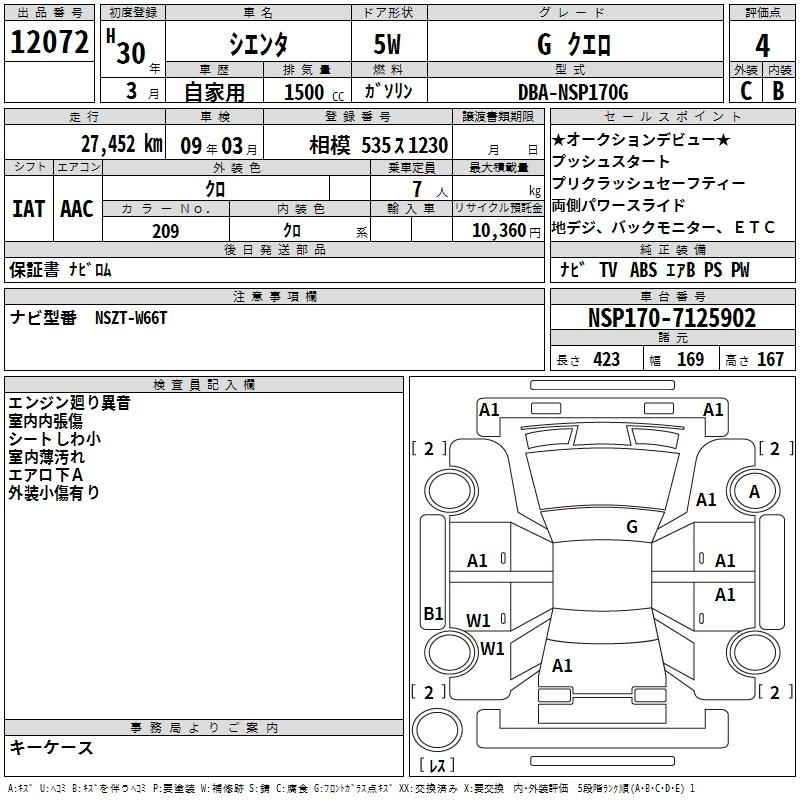 TOYOTA SIENTA 2018 г., лот № 12072