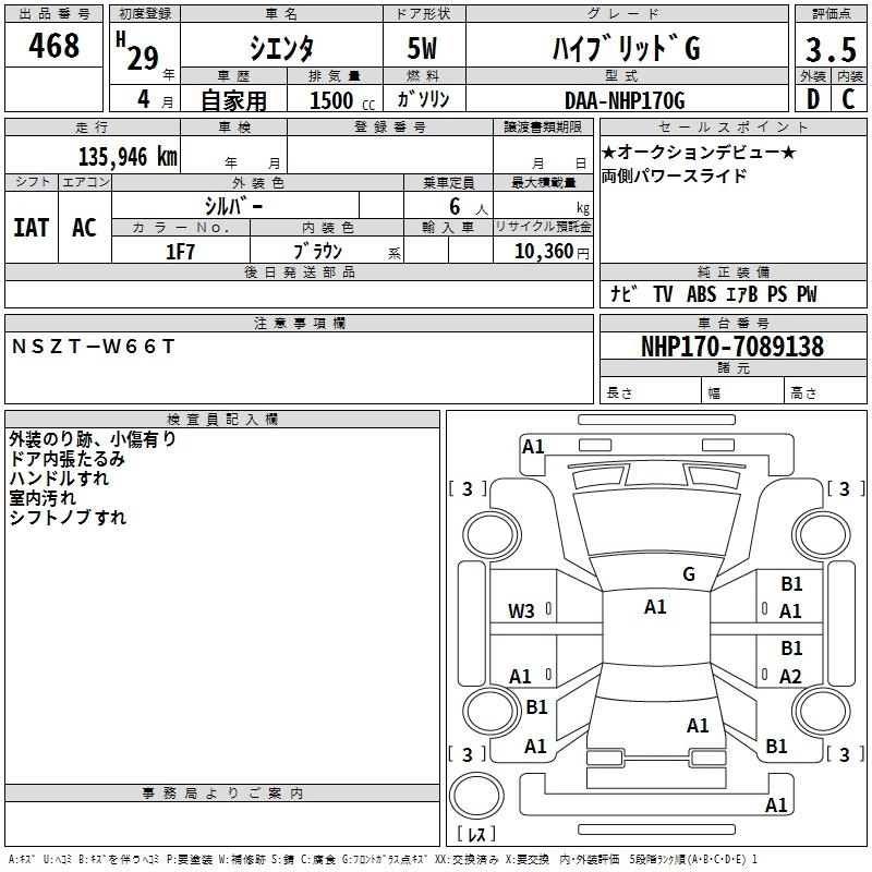 TOYOTA SIENTA 2017 г., лот № 468