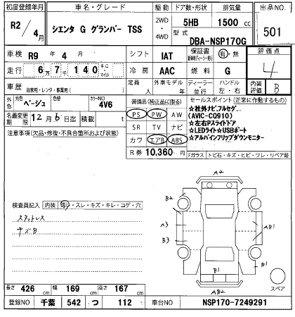TOYOTA SIENTA 2020 г., лот № 501