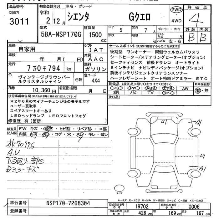 Итоговая цена авто на аукционе 1 296 000 ¥