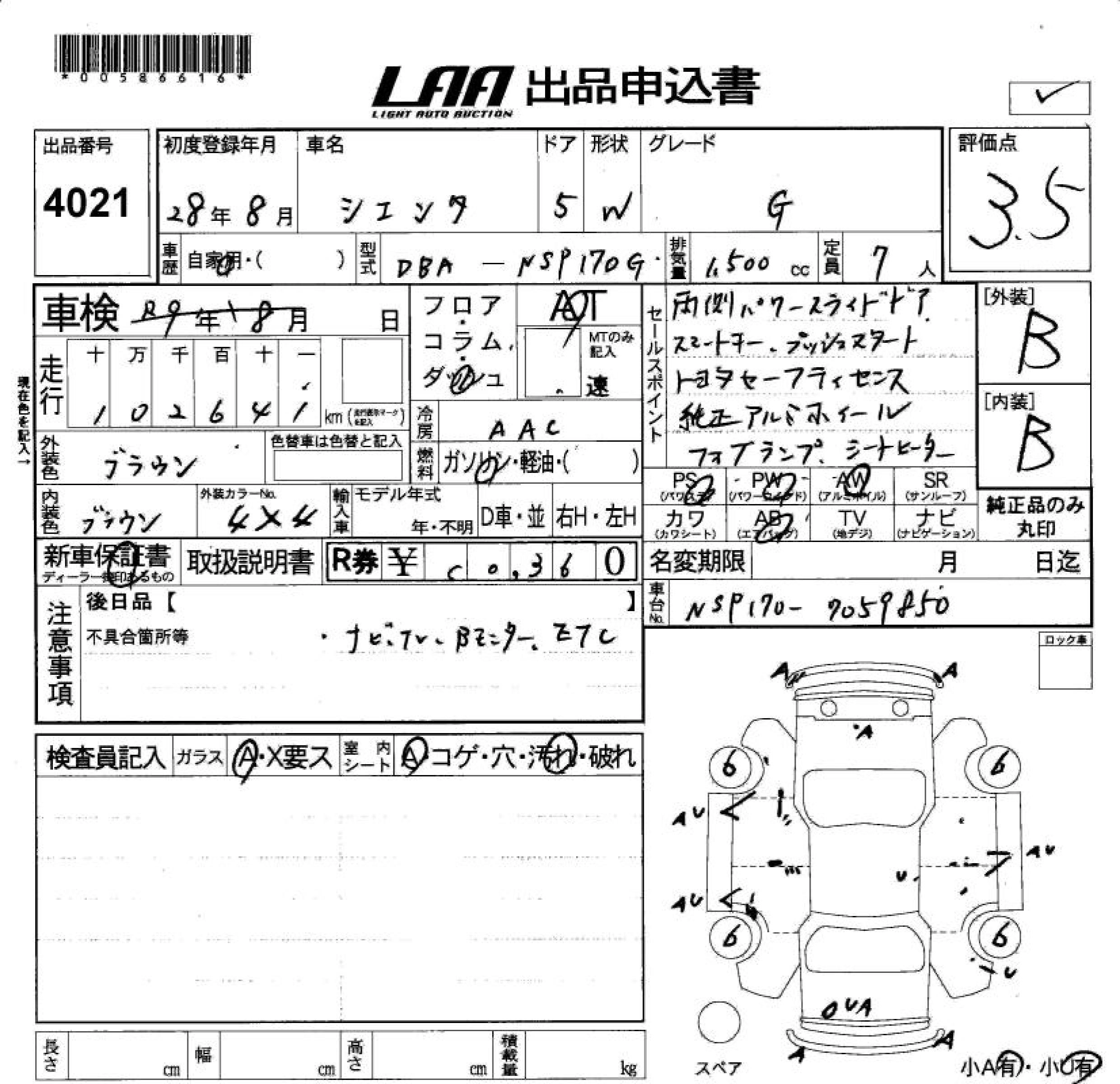 TOYOTA SIENTA 2016 г., лот № 4021