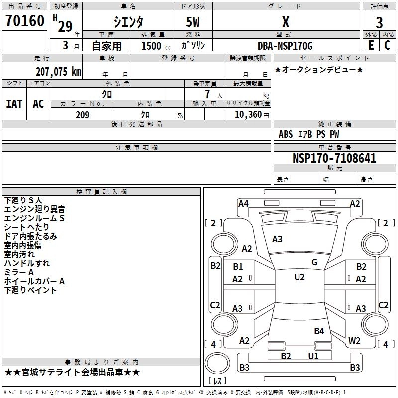 TOYOTA SIENTA 2017 г., лот № 70160