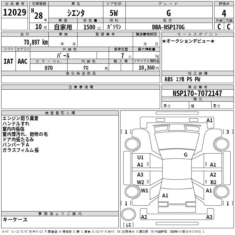 TOYOTA SIENTA 2016 г., лот № 12029
