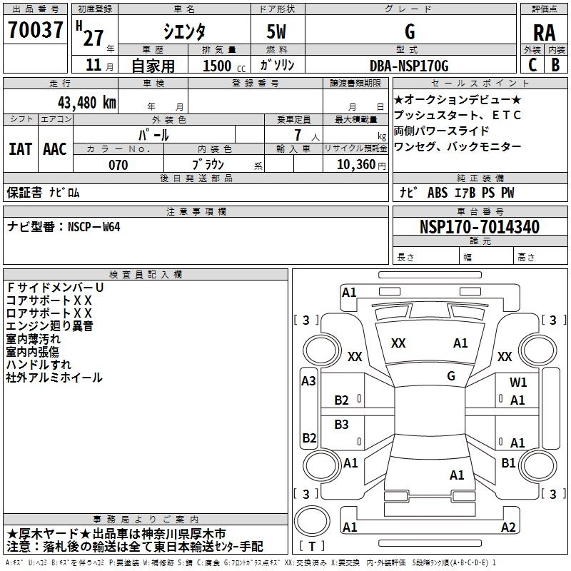 TOYOTA SIENTA 2015 г., лот № 70037