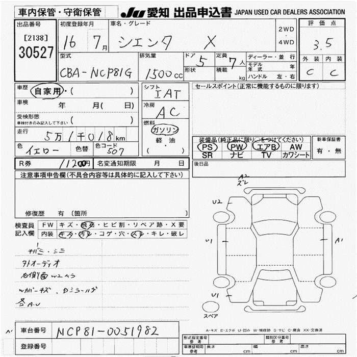 TOYOTA SIENTA 2004 г., лот № 30527