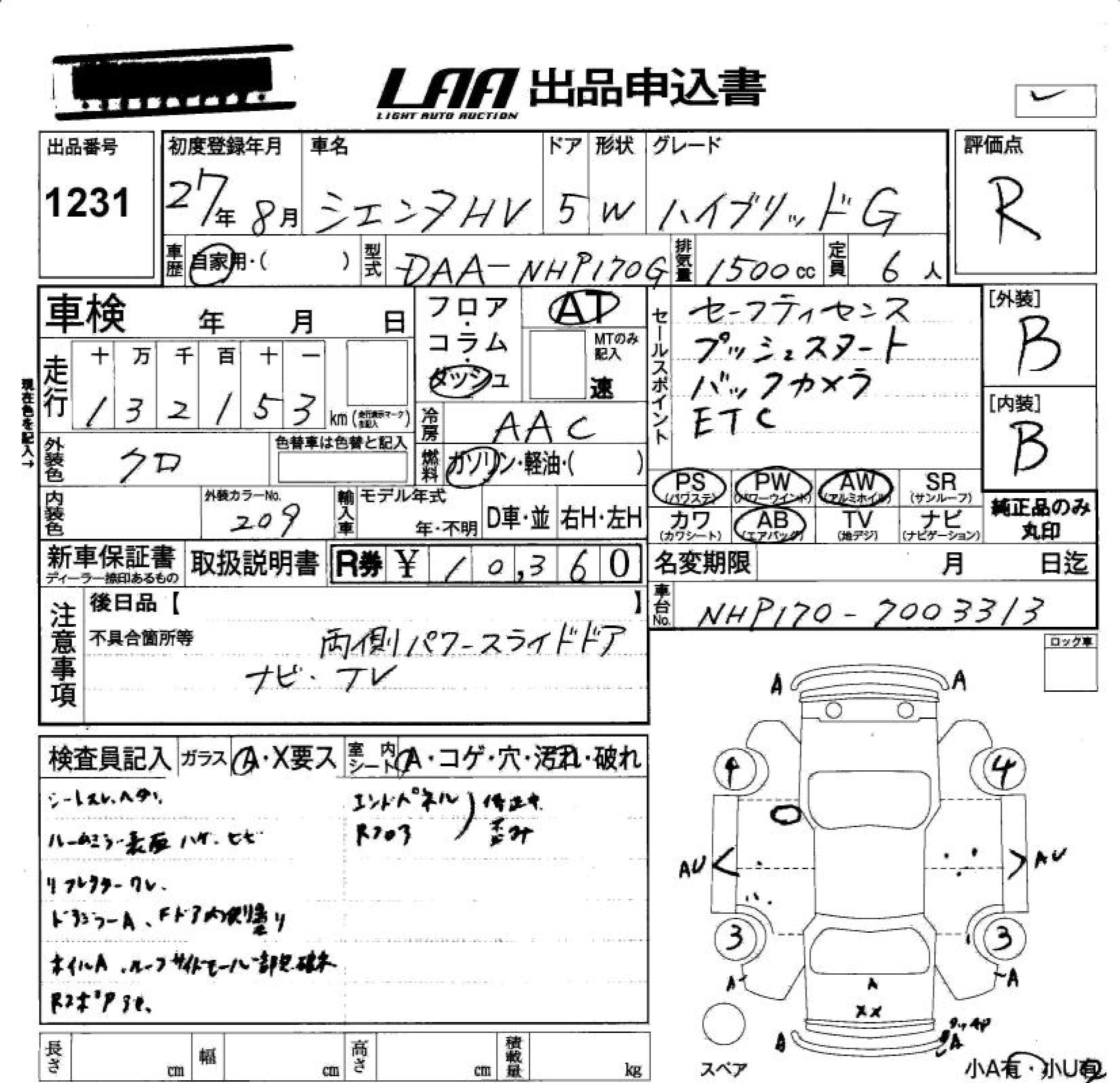 TOYOTA SIENTA 2015 г., лот № 1231