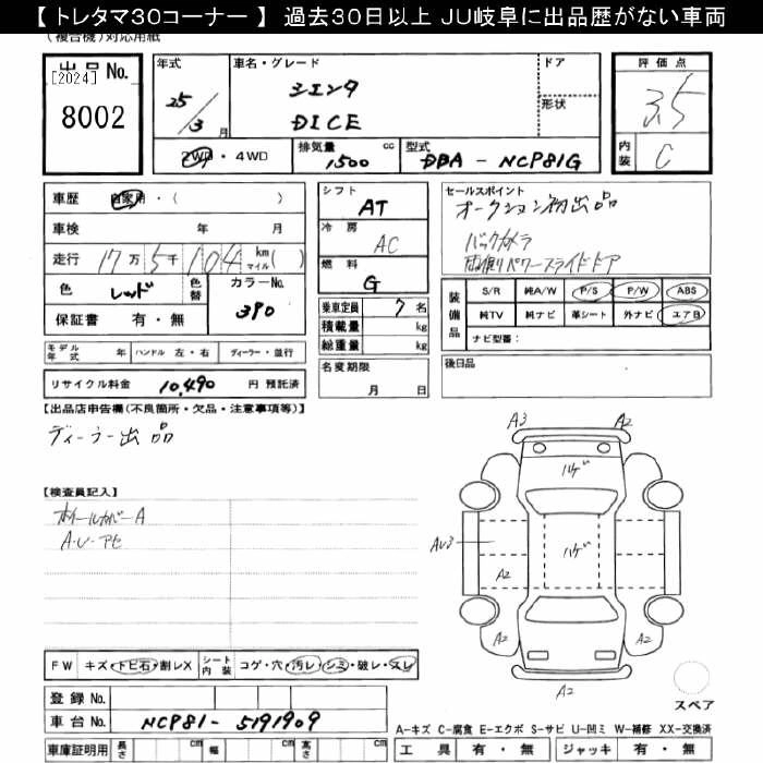 Статус выставлен на аукцион Лот 8002 Аукцион JU Gifu Дата аукциона 13.12.2025
