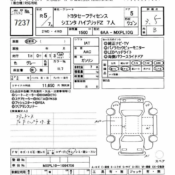 TOYOTA SIENTA 2023 г., лот № 7237