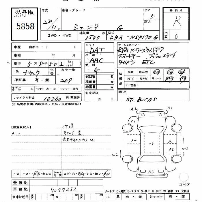 TOYOTA SIENTA 2016 г., лот № 5858