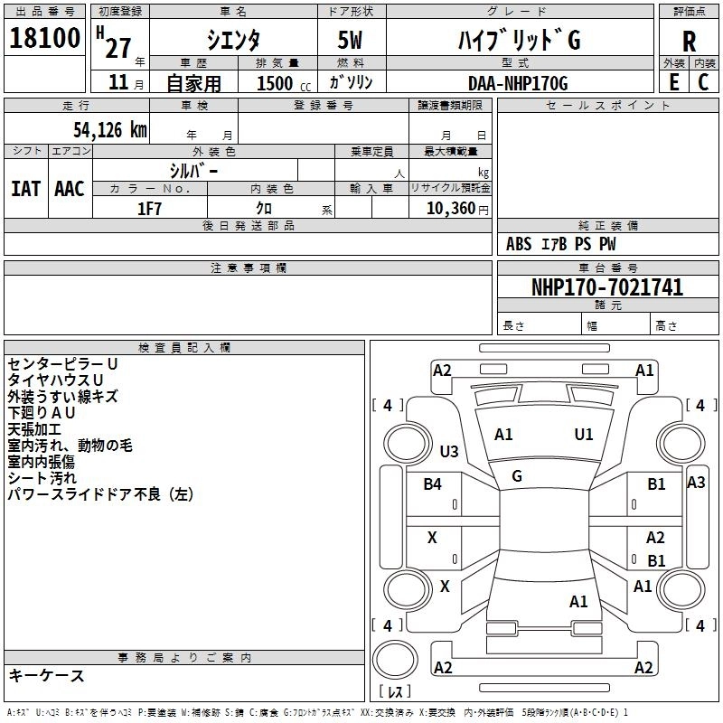 TOYOTA SIENTA 2015 г., лот № 18100