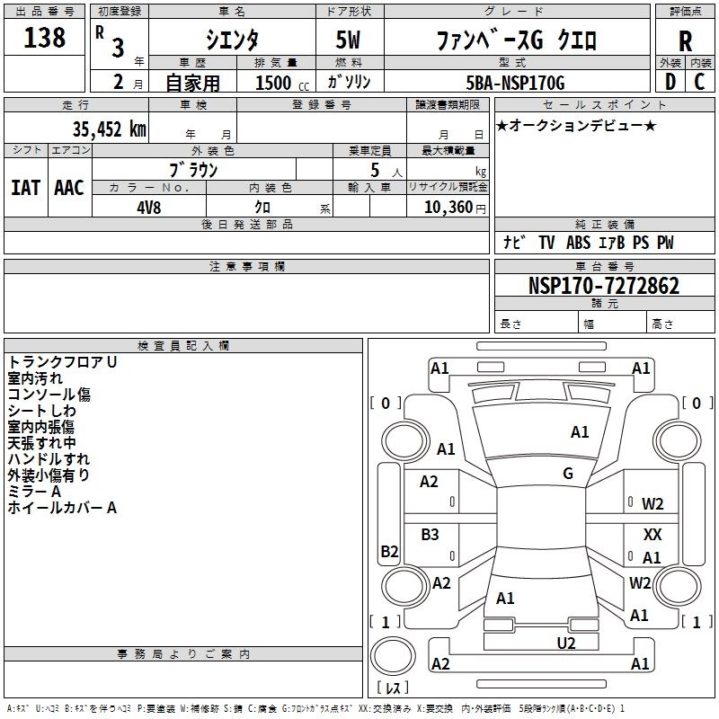 TOYOTA SIENTA 2021 г., лот № 138