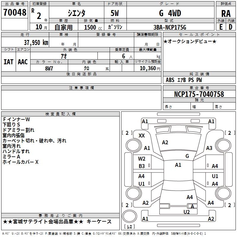 TOYOTA SIENTA 2020 г., лот № 70048