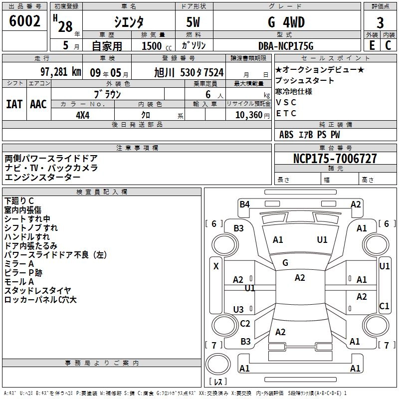 TOYOTA SIENTA 2016 г., лот № 6002