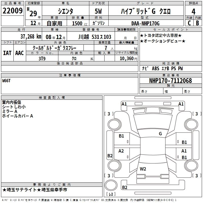 TOYOTA SIENTA 2017 г., лот № 22009